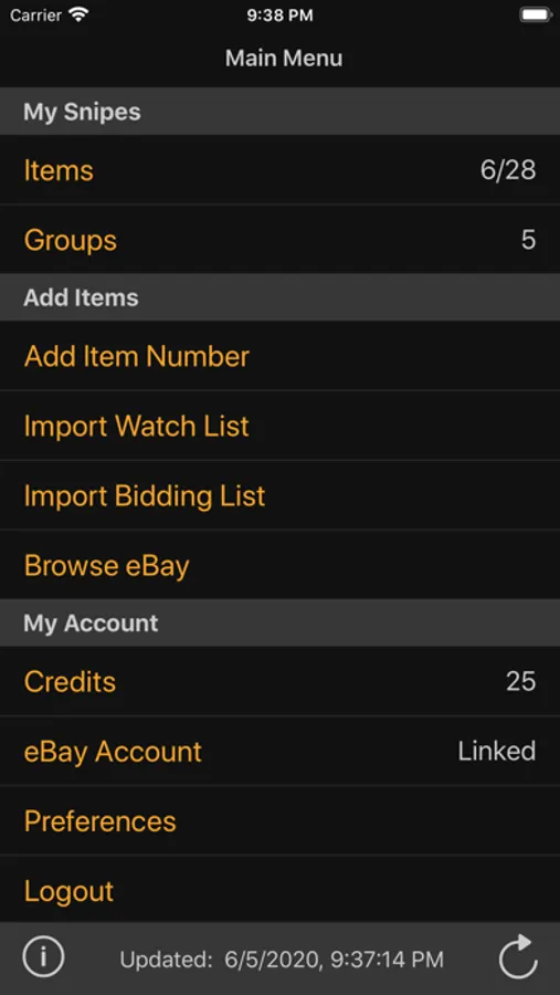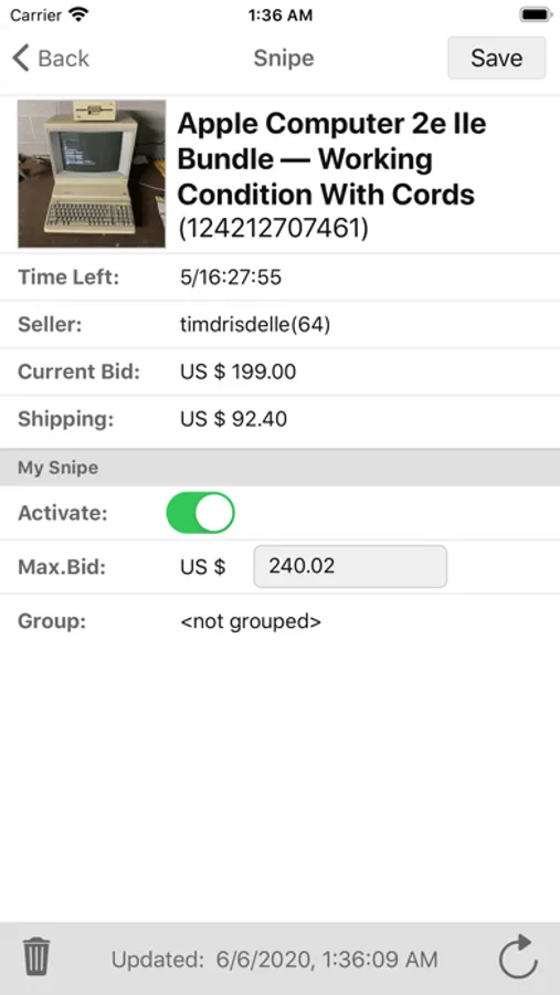 2. You can stop sniping if you have at least 1-2 minutes to delete the item from your list or set "off" on "Activate" on the Snipe screen and save the change.