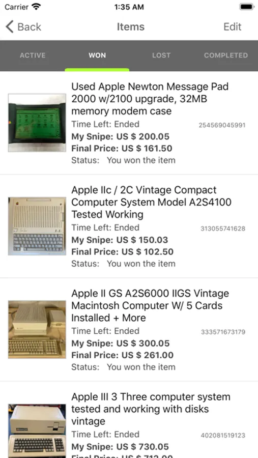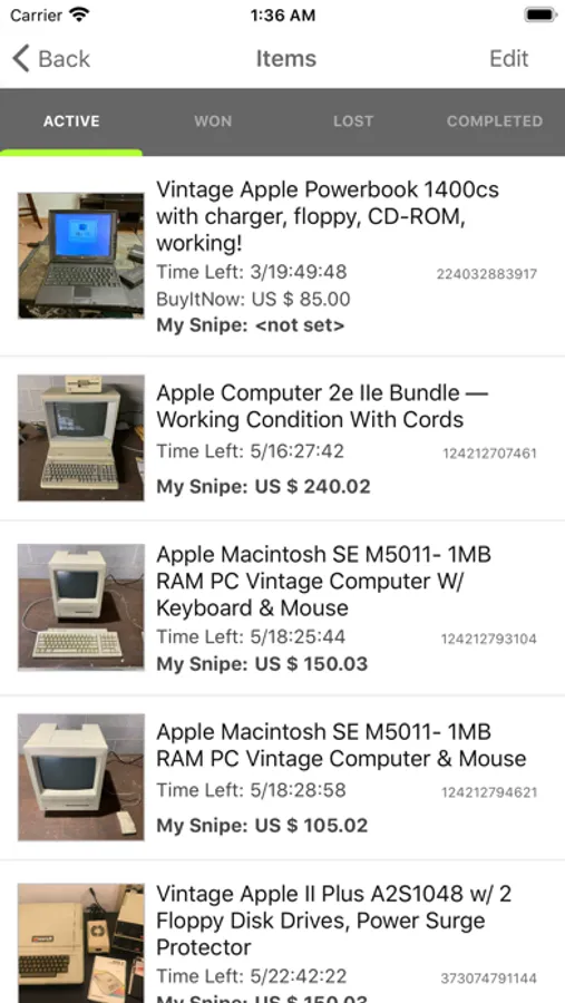 No need to watch for auctions anymore, just set a snipe and let the sniper do the job for you.