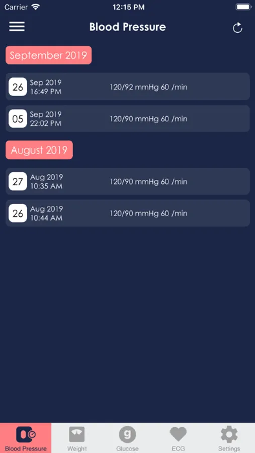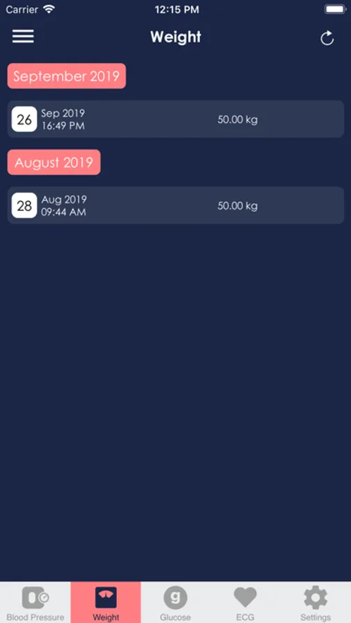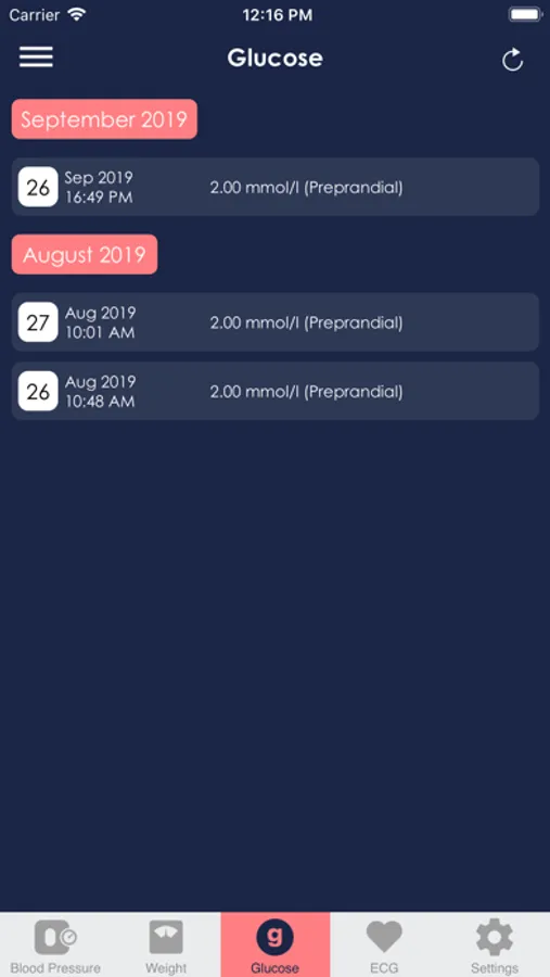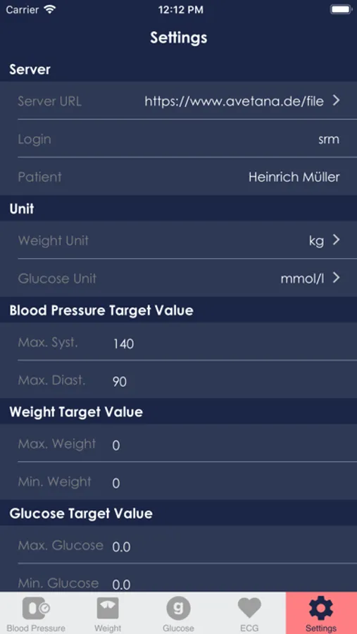 The app further allows the manual collection and graphical presentation of weight, blood pressure and glucose levels.
