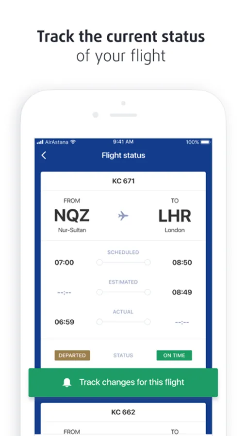 With the updated Air Astana mobile app you can now make your travel arrangements playfully on the go. Choose best fares, book flights, order special services, check-in online, use your virtual Nomad Club card and much more.