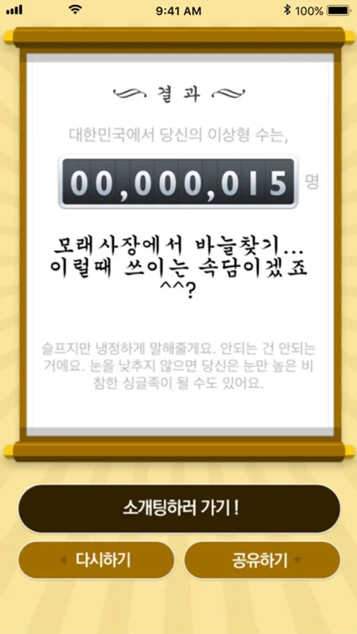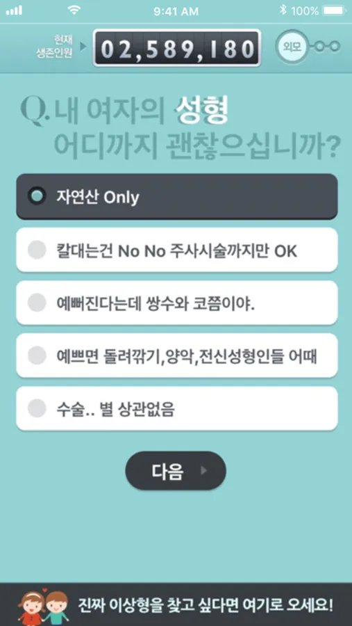 내 이상형을 모두 넣어 대한민국에 몇 명이 있는지 측정해 드립니다.