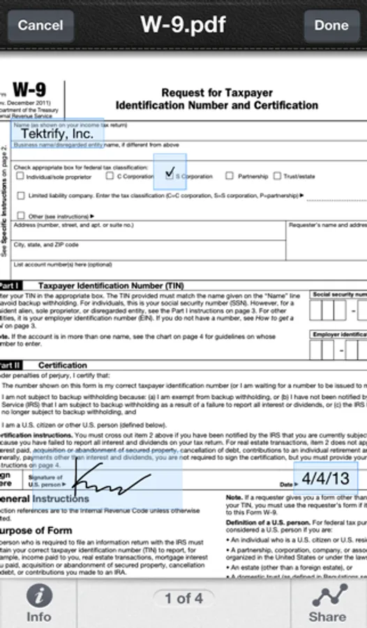 2) Fill out form with your name, initial, date, check boxes and sign realistically with your finger