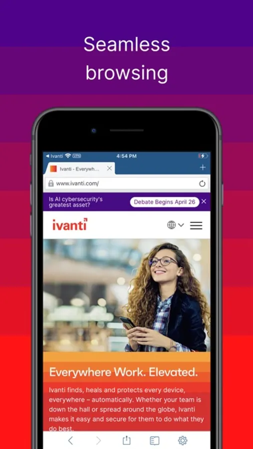 NOTE: Web@Work requires Ivanti's Core or Cloud platforms to access internal web content without a separate VPN connection. Please consult with your organization's Mobile IT staff before downloading Web@Work.