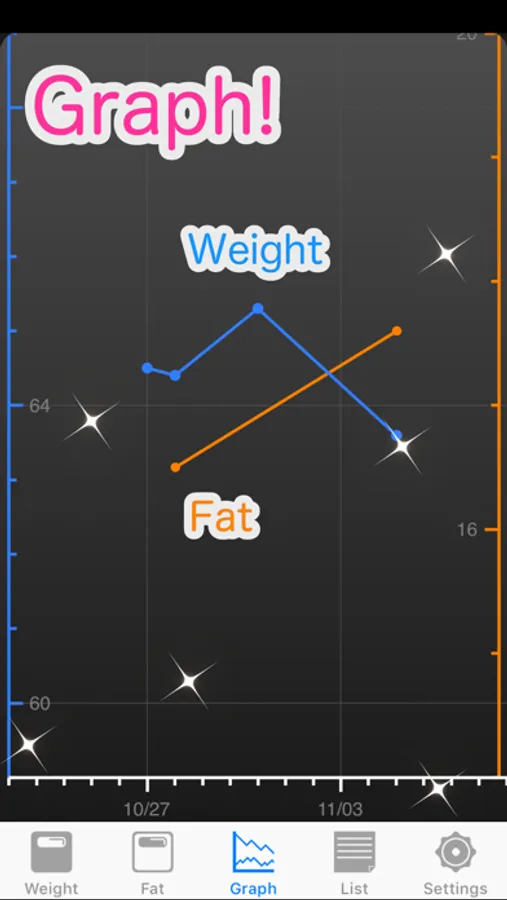 This app has a physics engine and will make you to enjoy recording your body weight/fat! It is fun more than general scaling applications. Enjoy!