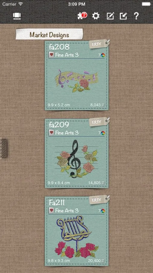 * Complete collection of embroidery designs to purchase through the Apple Store