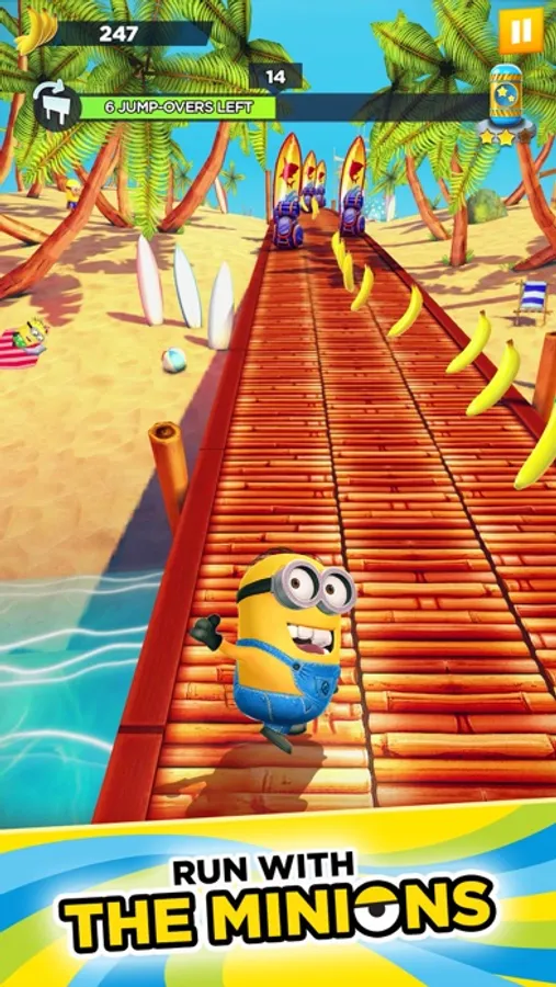Illumination, Universal, and Gameloft bring you Minion Rush, an endless running game that can be enjoyed offline, anytime! Run through lots of cool locations, dodging devious traps, battling vile villains, and collecting loads of bright, beautiful Bananas!