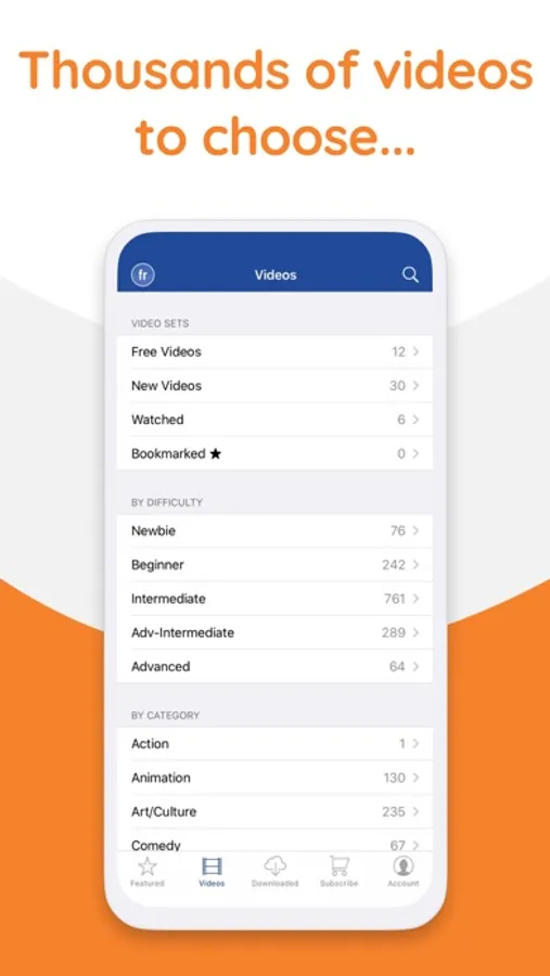This App contains a limited selection of free language learning videos. Full access requires a purchased subscription. Subscriptions are available as a one-time payment, or as an auto-renewing subscription.