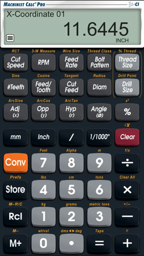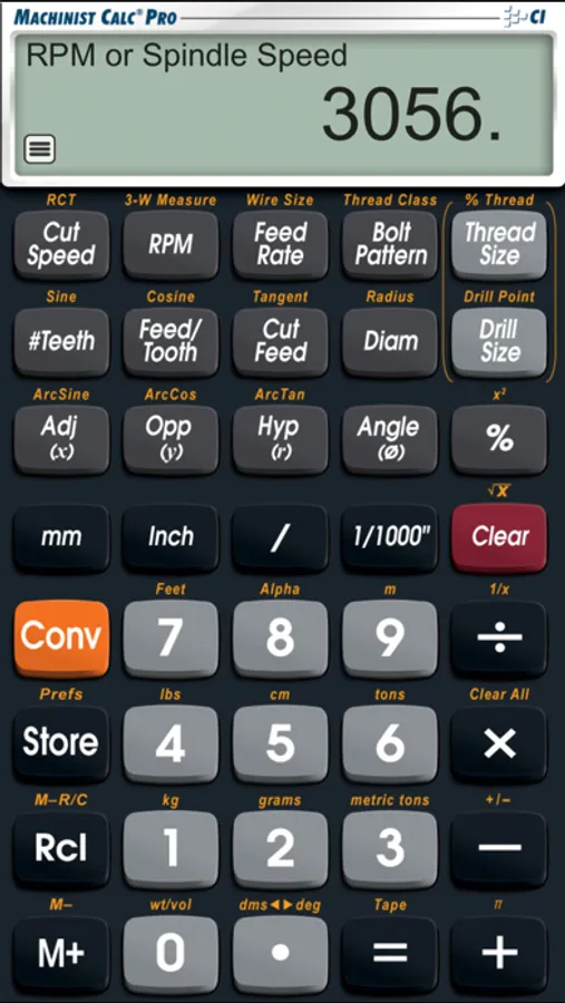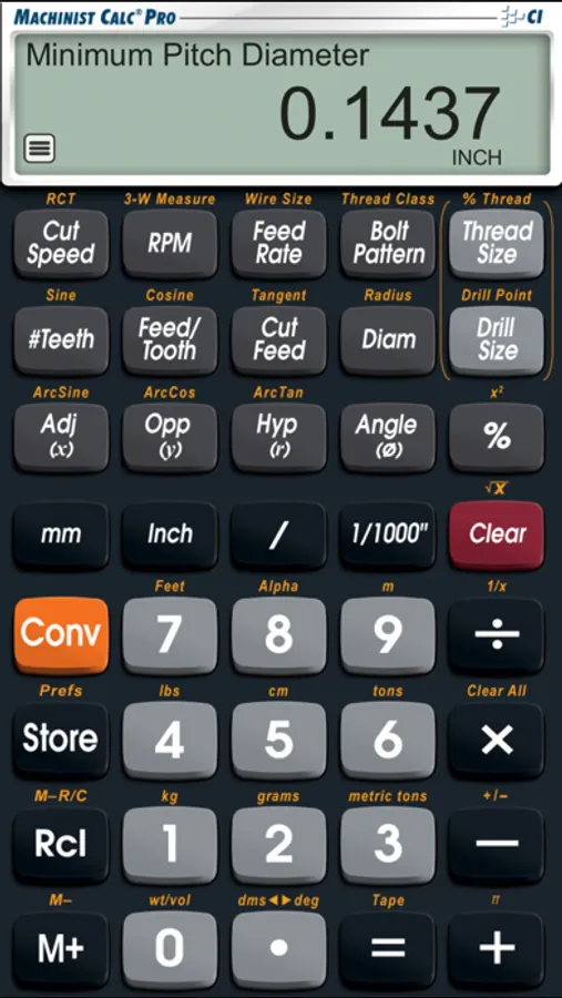 The Machinist Calc Pro is the first machining math and reference tool to provide a complete assortment of machine shop solutions. It has more complete Thread data than the Machinery's Handbook, including step-saving Thread and Drill Size chart look-ups, speeds and feeds, right triangle solutions, bolt patterns and much more.