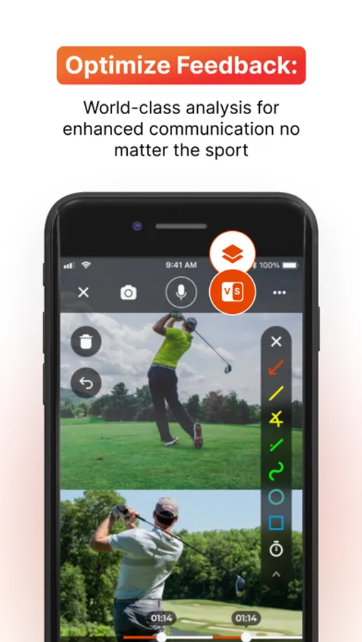Eliminate confusion with dynamic annotation tools. Use angles, shapes, timers, etc to provide technical feedback and keep your athlete hyper-aware of their form.