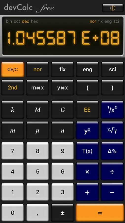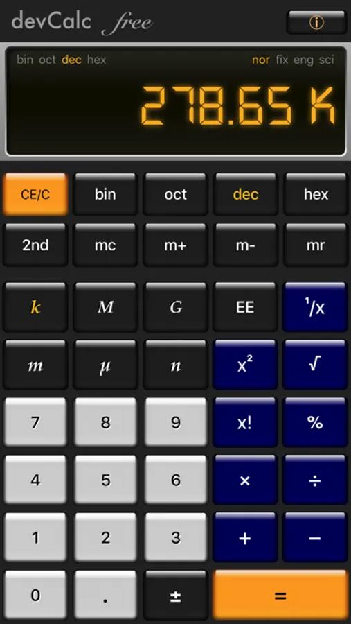 devCalc is an optimum blend of an engineering, a scientific and a programmers calculator.
