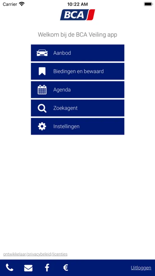 BCA is marktleider op het gebied van autoveilingen en dé beste partner in de automotive branche. Mobiliseer uzelf nu mobiel in een B2B omgeving en maak gebruik van de BCA Autoveiling app.Met de BCA Autoveiling app heeft u de mogelijkheid om vanaf uw smartphone of tablet auto’s te kopen via het AutoBLOX platform. Daarnaast kunt u voertuig- en veilinginformatie bekijken op het BCA platform.Wat kunt u met de BCA Autoveiling app op het BCA en AutoBLOX platform:- Het aanbod in de online veilingen bekijken- Voertuigen toevoegen aan uw favorieten- De veilingagenda bekijken- Een melding/notificatie ontvangen wanneer een veiling start- Een zoekassistent instellen en een melding/notificatie ontvangen wanneer uw gezochte voertuig in een veiling staat- Een melding/notificatie ontvangen zodra u bent overboden- Direct contact opnemen vanuit de appDaarnaast zijn er een aantal extra functies beschikbaar voor de veilingen op het AutoBLOX platform, zoals:- Een bod uitbrengen met de biedagent- Live meebieden- Een bod uitbrengen op een biedlijst terwijl u bij het voertuig staatOm gebruik te maken van de BCA Autoveiling app heeft u inloggegevens nodig. Heeft u nog geen inloggegevens? Meld u dan nu aan via de BCA website. Mocht u problemen, vragen en/of opmerkingen hebben over de werking van de app dan kunt u te allen tijde contact opnemen met BCA via marketing.nl@bca.com en per telefoon op 0031-342 40 45 40.Volg ons ook op Facebook:https://Facebook.com/BCAAutoveiling