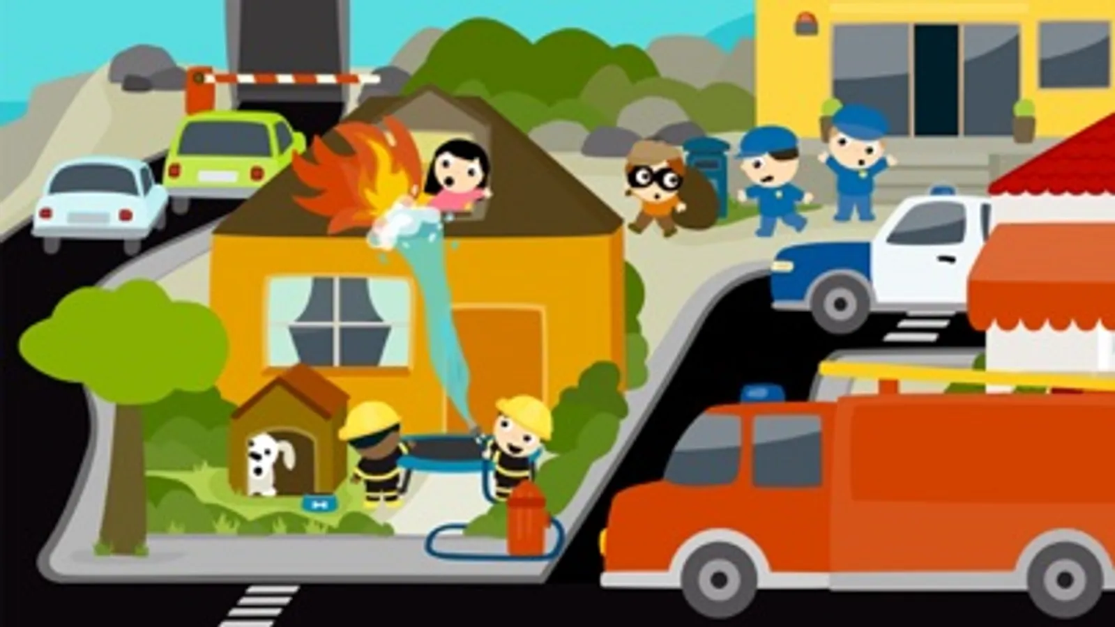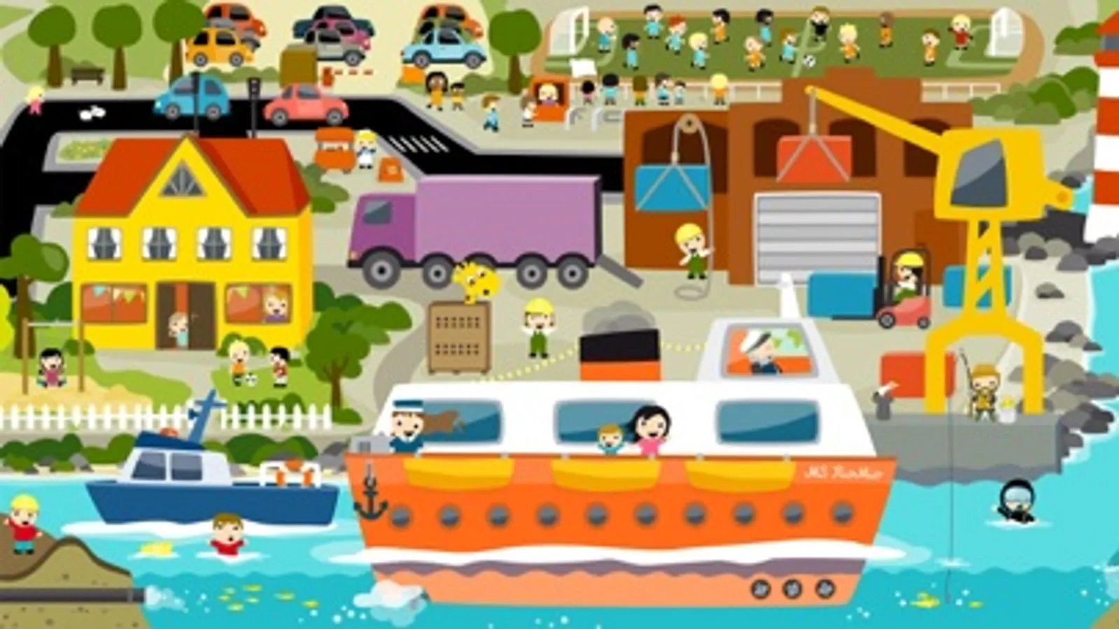 The app contains 55 professionally illustrated and animated scenes with over 200 individual animations. These show various activities and events within the urban world and teach children how things are interconnected. Every one of the little cartoons is individually set to sound.