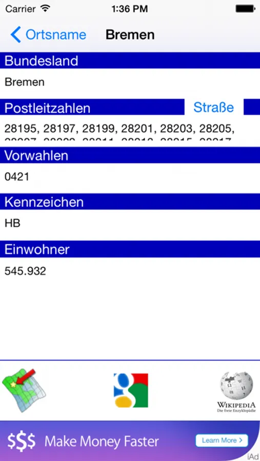 Mit dieser komfortablen App bekommst du eine Menge an Informationen über Orte in Deutschland.