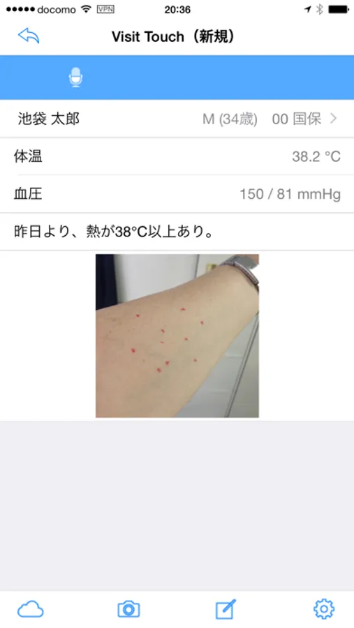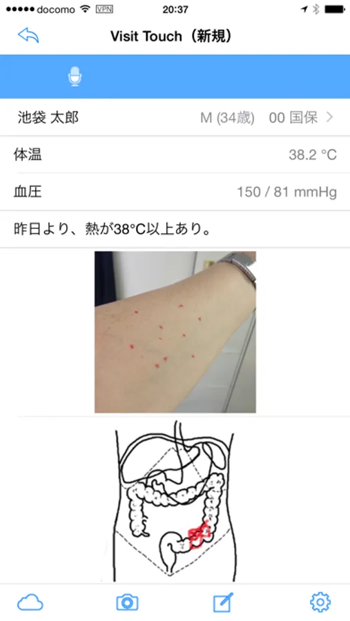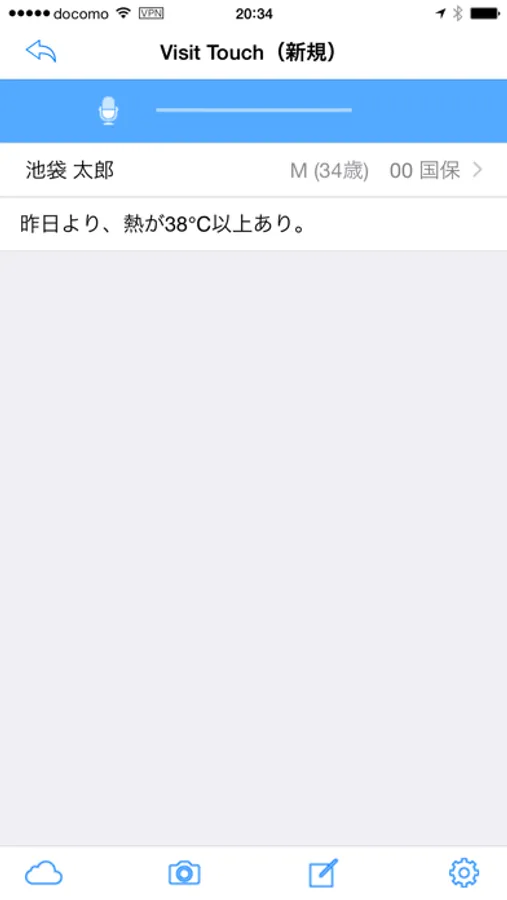 所見入力をiPhone/iPadの音声入力機能とクラウド音声認識技術で実現しました。訪問先でのカルテ作成を口述筆記で行えます。所見入力の他にもカメラ機能を使った患部撮影やタッチ操作でのバイタルサイン入力などの特長を備えます。