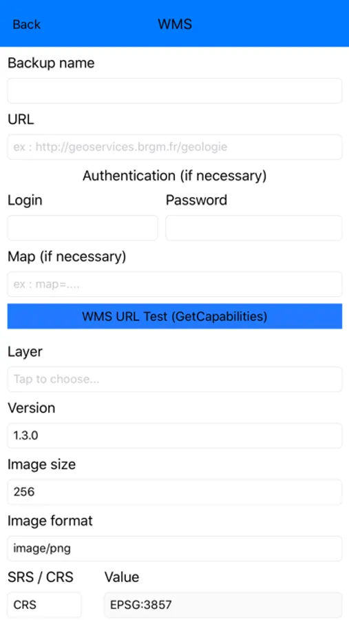 The application allows you to import KML files and view fully customizable and cumulative WMS layers.