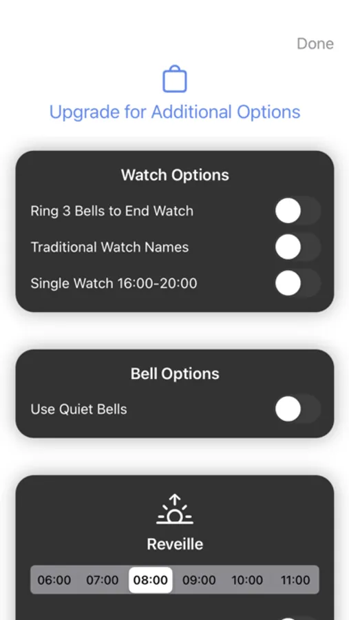 Mark the passage of time with the authentic chime of a ship's bell. Sailors have long signaled the beginning and end of duty watches by striking bells in a pattern that cycles in four hour intervals. Excellent for use as a display or background chiming clock on all of your compatible iOS devices.