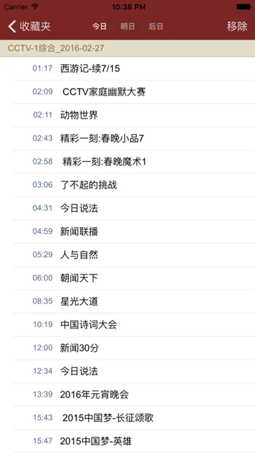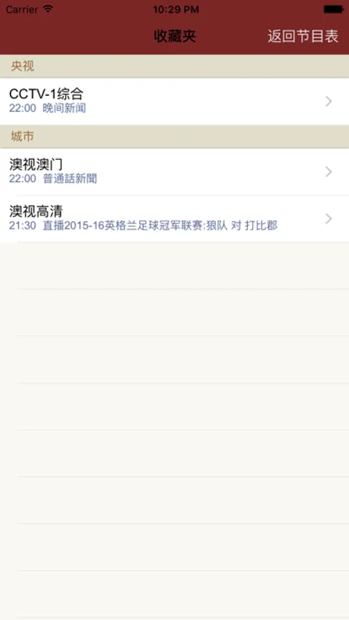 此应用程式可以快速查询中国电视节目,包括央视、卫视、数字和各个城市,城市包括:香港、澳门、北京、上海…等,提供最近三日的节目单,快速查询正在播放的节目,遇到特別喜爱的频道,加入到收藏夹即时追蹤节目,列表出属於自己的节目单。