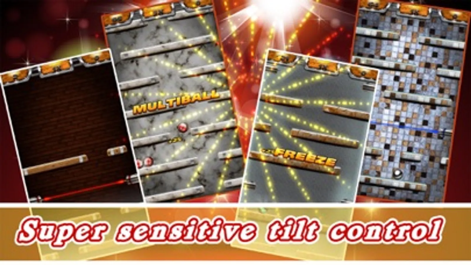 Tilt the ball to control it and try to avoid getting destroyed at the top. You can collect several power-ups on your way down, that help go deeper and live longer. To add more strength to your ball just visit the in-game store that allows you to buy superpowers. You need coins for the in-game store. You can get coins from playing and getting high-scores, by sharing this app with your friends or with in-app purchase.
