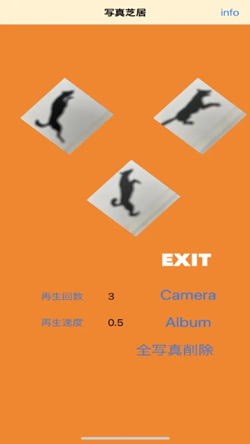 このアプリは、撮影した写真をアニメーション化することができます。従来のUIKit(UIView)に基づく画面をSpriteKit(SKView)によるパラパラ動画画面に変更しました。また、パラパラ動画にBGMを付けました。出典:「魔王魂」作 https://maoudamashii.jokersounds.com/list/bgm11.html。パラパラ動画の素材となる画像はカメラ撮影して入力できますが、今回新たに[全写真削除]機能を追加しました。