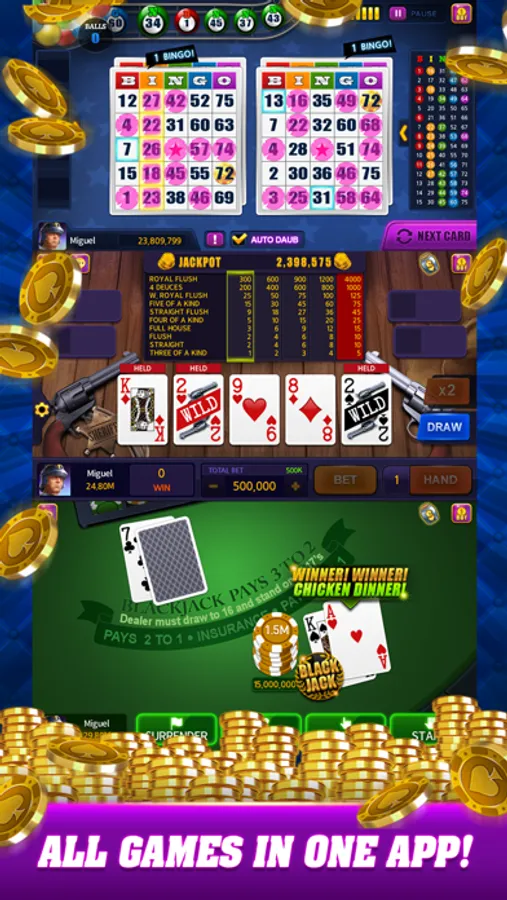 - Realistic Blackjack and Baccarat play with 6-deck cards!
