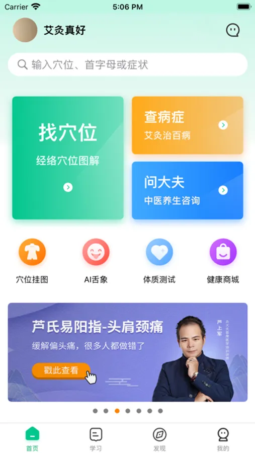 03.基于艾宾浩斯记忆曲线和遗忘曲线,融入超级记忆法,结合中医权威专家提供的经络学习题库,提供了中医经络穴位记忆学习功能。该学习功能,利用科学的记忆和学习算法,能帮助用户高效学习和记忆繁琐难背难应用的经络穴位。