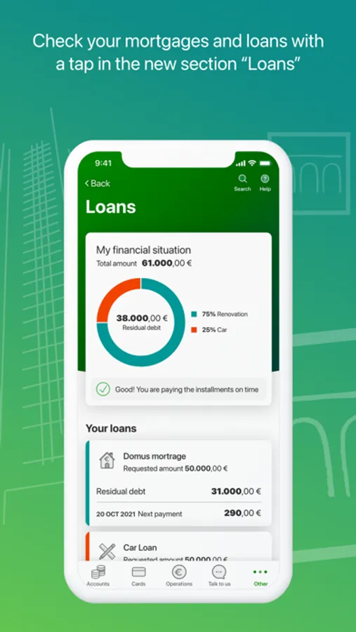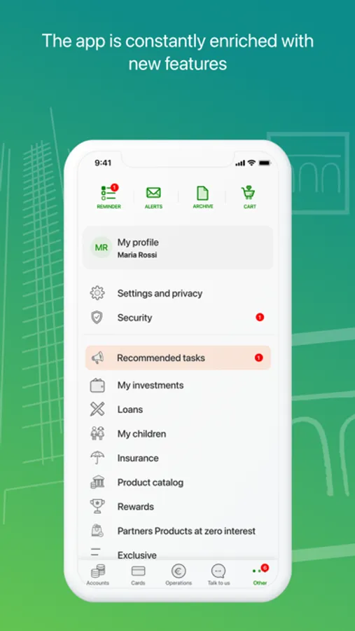 • Consult the account and cards of Intesa Sanpaolo or other banks,