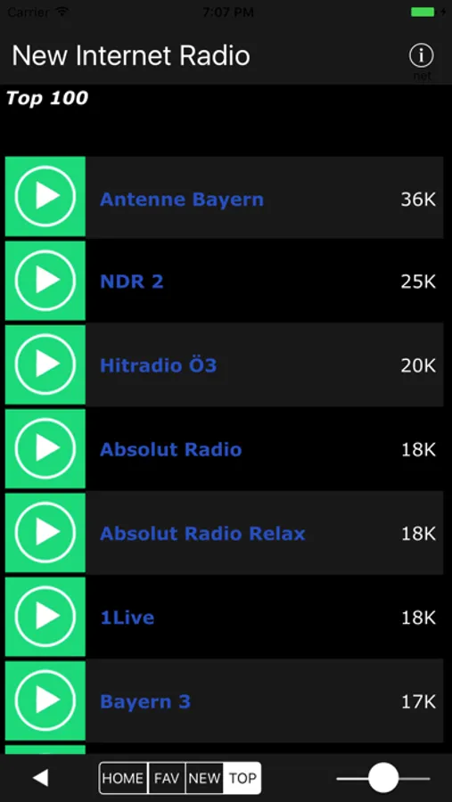 The 'New Internet Radio' plays internet radio stations. There are over 15.000 radio stations included are processed monthly editorial. If you can not find your favorite radio station, write to Pocketkai, it will try to add channels.