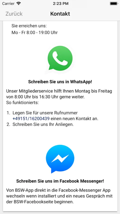 In Ihrer aktuellen Vorteilsübersicht können Sie direkt einsehen, wie viel Sie bereits mit BSW gespart haben. Bei Fragen können Sie neben den üblichen Kontaktwegen auch per WhatsApp und Facebook-Messenger direkt und persönlich mit uns kommunizieren.