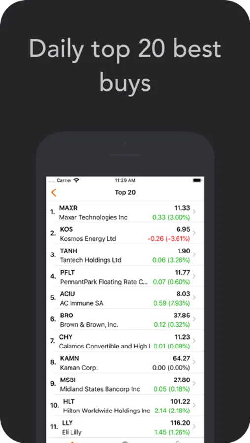TOP 20 BEST BUYS- Quantitative Analysis System gives you a list of the Top 20 best buy stocks from stock market statistics, daily. The stocks analysis & advanced stock charts let you to plan the investment from short, medium & long-term perspectives. Based on the app’s technical analysis you can decide which stocks to buy now!