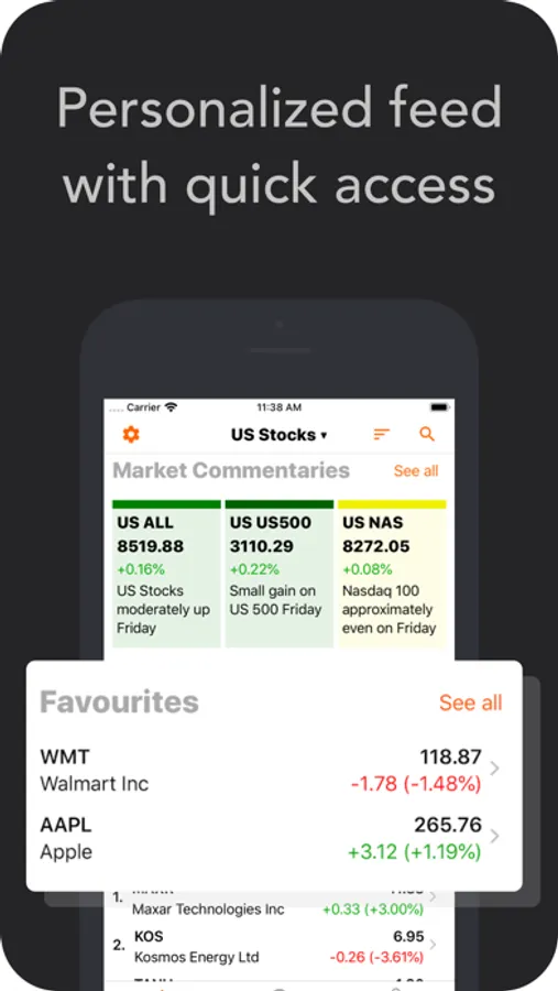 PERSONALISED FEED- Track daily market changes & add stocks to your favourites list. Invest smart, get insights on investor psychology & stock analysis on your phone. Customize your feed according to which shares, indices, analysis & charts you’d like to see first.