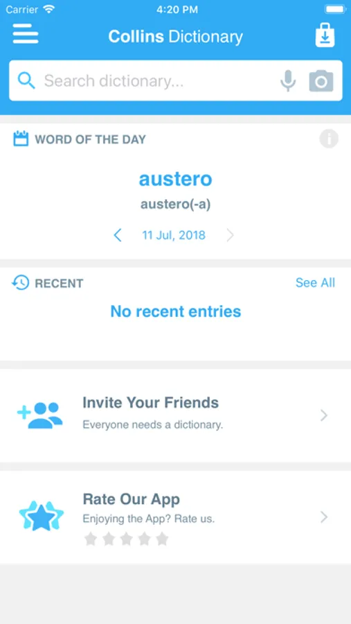 • Learn in style with any of the four colorful new themes – The colorful layout will turn your learning experience into an enjoyable routine. Customize your dictionary and benefit from the cheerful mood your favorite color brings you.