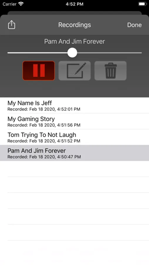 • Share recordings with friends via iMessage, Text, E-Mail, Facebook, Twitter, copied link or iTunes