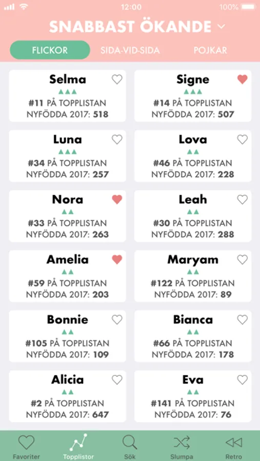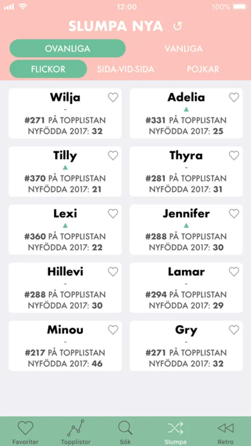 Med topplistor, favoriter och namnsök gör vi den svåra processen med att hitta rätt namn lättare. Testa slumpgeneratorn och få idéer på både vanliga och ovanliga namn.