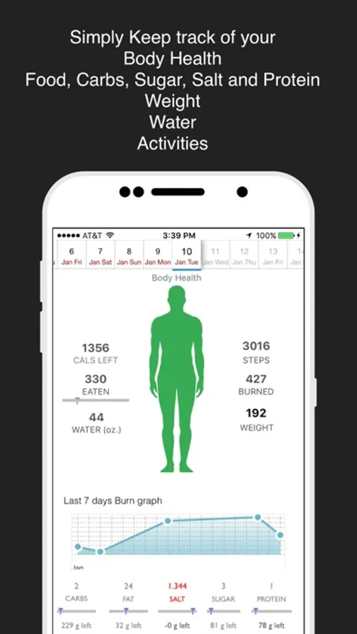 —> Track your food intake and exercise (seamlessly integrated with Apple's HEALTH App)