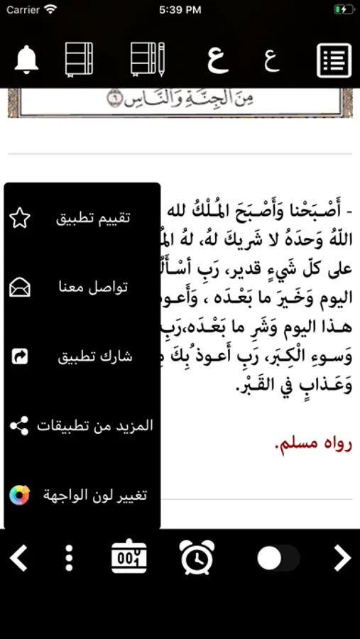التطبيق يحتوي على ميزات لقراءة الكتاب :