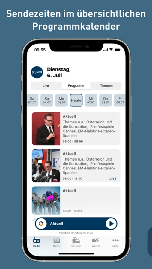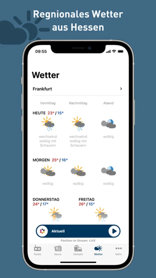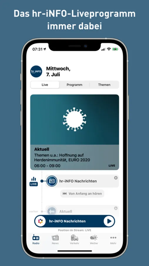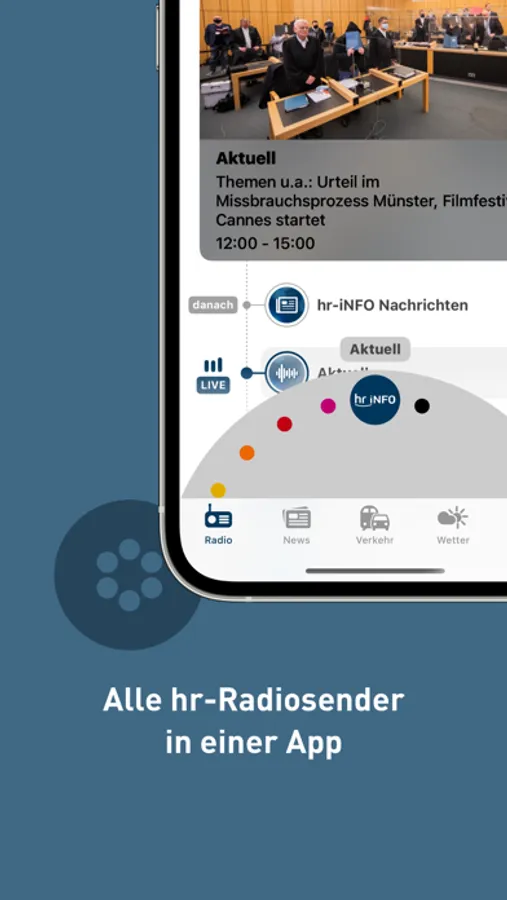 Die neue hr-iNFO-App ist da! hr-iNFO live hören, im Programm zurückspringen, aktuelle Informationen, jederzeit zu allen hr-Sendern wechseln, Verkehrs- und ÖPNV Meldungen sowie regionales Wetter – das alles gibt es in der neuen App.