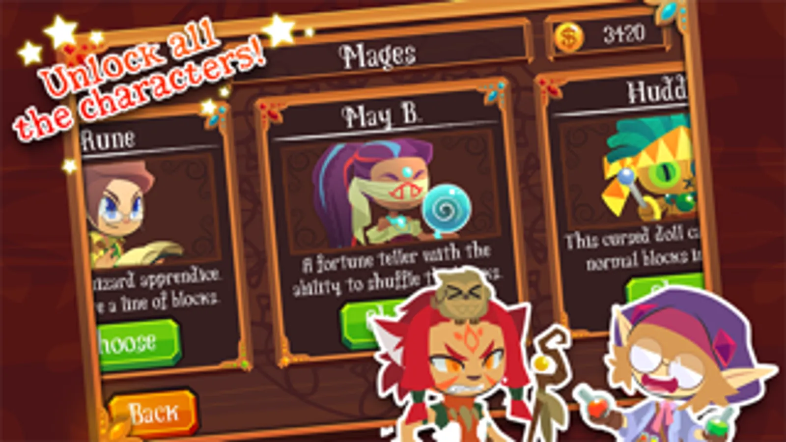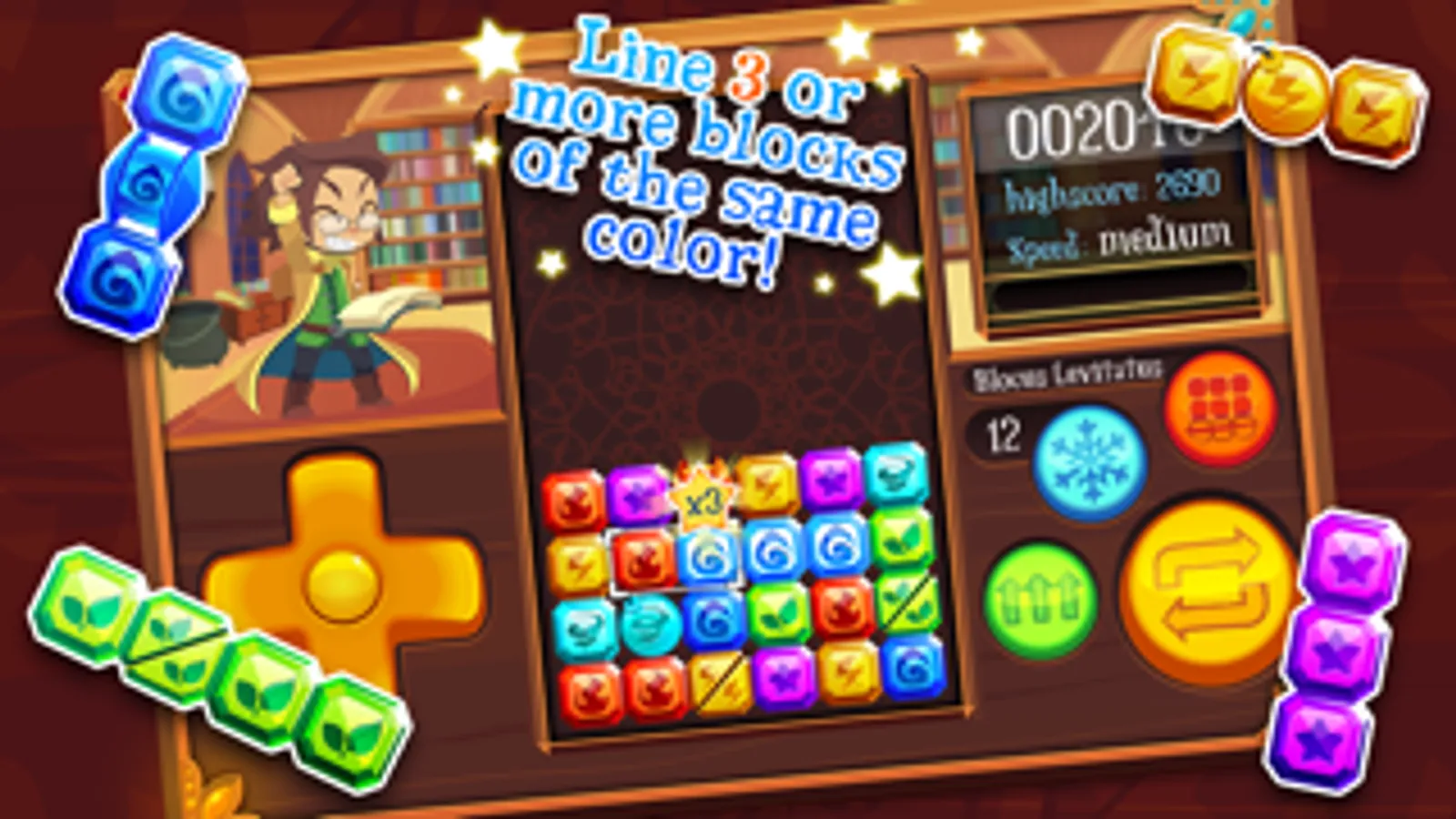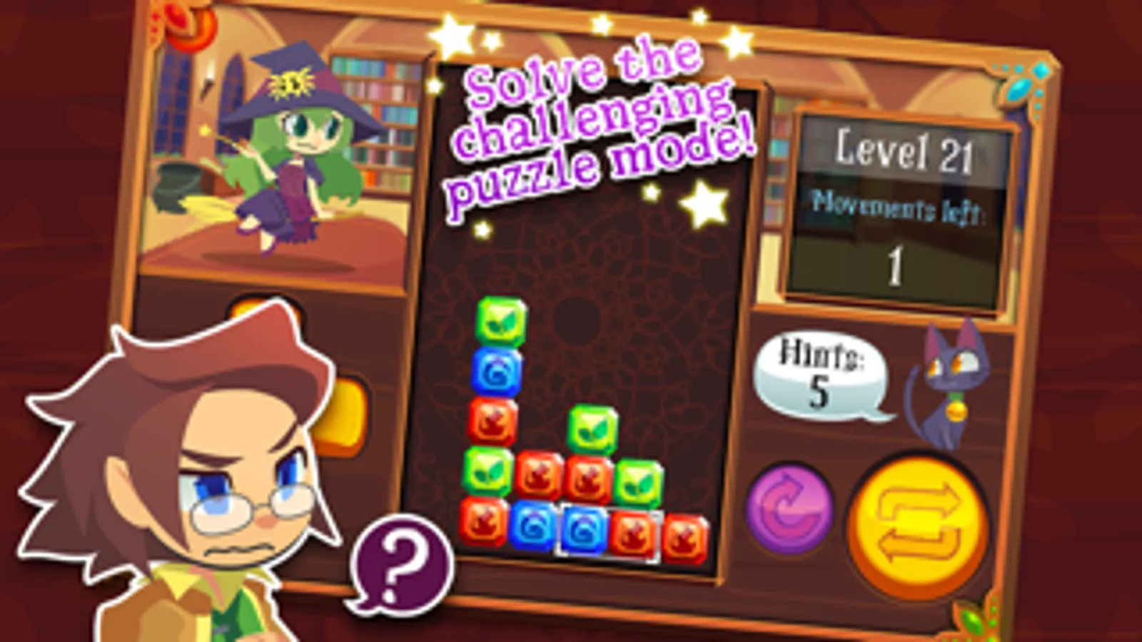 Equal color gems must be combined and 'Danger Time' must be avoided! But if your human skills don’t get you to solve this puzzle, you can count on 5 talented wizards to give you a magical help: Rune, May B., Hudda, Ferus and Tabitha, each with its unique power.