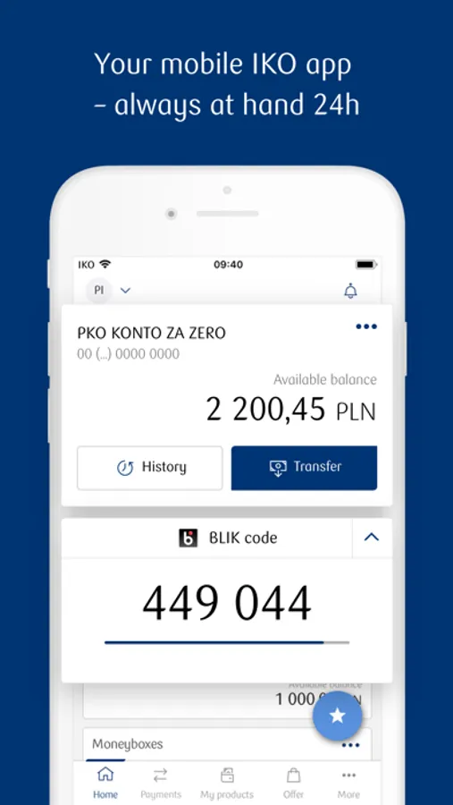 - Pay in traditional and online stores using only BLIK code from the IKO app,