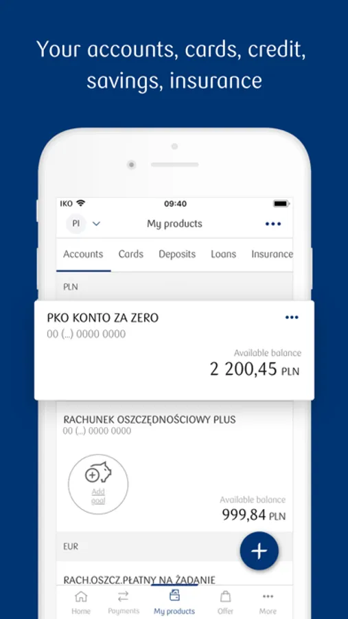 Manage your PKO Bank Polski/Inteligo account from your mobile phone with the IKO app (electronic banking service).