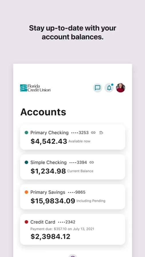 Florida Credit Union Mobile Banking allows you to check balances, view transaction history, transfer funds, and pay loans on the go!