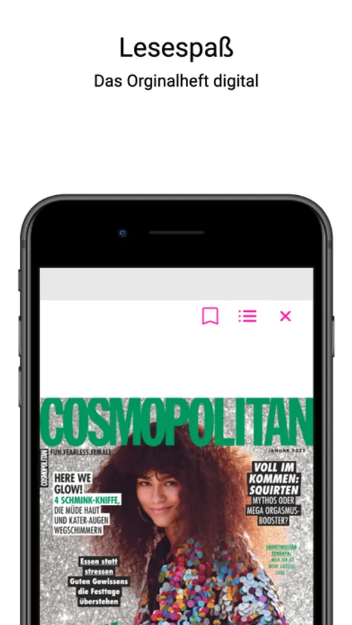 Das ePaper der Cosmopolitan erscheint monatlich neu und bietet immer pünktlich und top aktuell interessante Interviews, spannende Berichte und Reportagen zu den Themen Partnerschaft & Erotik, Job & Karriere, Mode & Schönheit, Reisen und Kultur. Durch viele Zusatzfunktionen können Sie auf Ihrem Smartphone oder Tablet auch unterwegs ein multimediales Leseerlebnis genießen: Zoomen, blättern, Links und vieles mehr machen das Magazin immer frisch und spannend.
