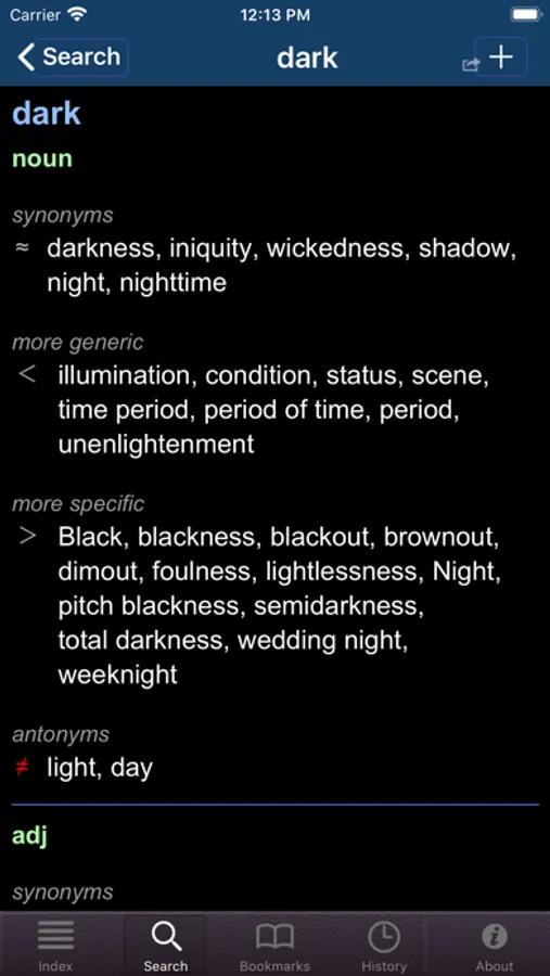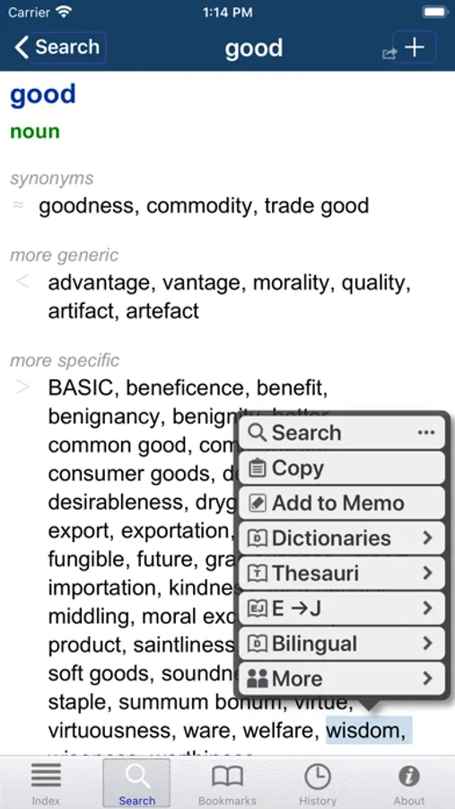 Link out to "Companion Thesaurus" just by tapping on any headword.