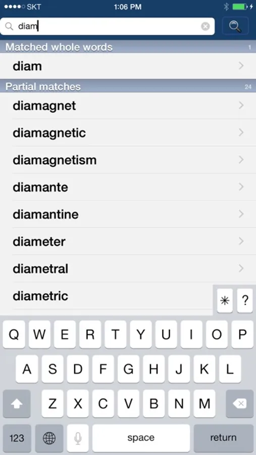 This application links to applications running on UniDict® Engine -tap on a headword to invoke a search.