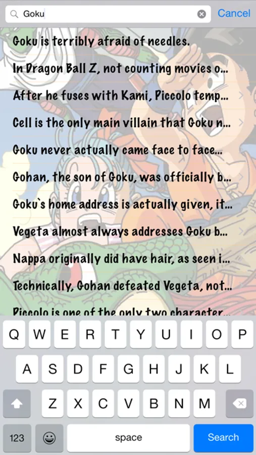 - interesting facts from all Dragon Ball series and movies (70 in free version, more than 120 in full version)