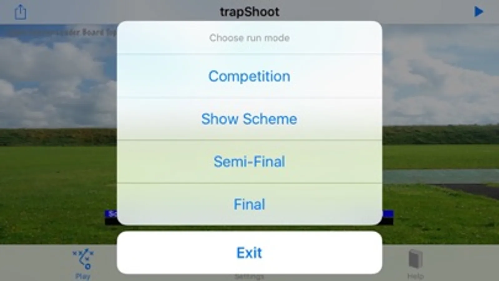 One of the basic principles of Clay Target shooting is the process of first visualising and then physically re-creating what you've seen in your mind's eye. In Olympic Trap we don't know the direction of the target but we know the scheme. Confidence can be enhanced by mentally walk through the scheme before you step on the shooting range using this App.