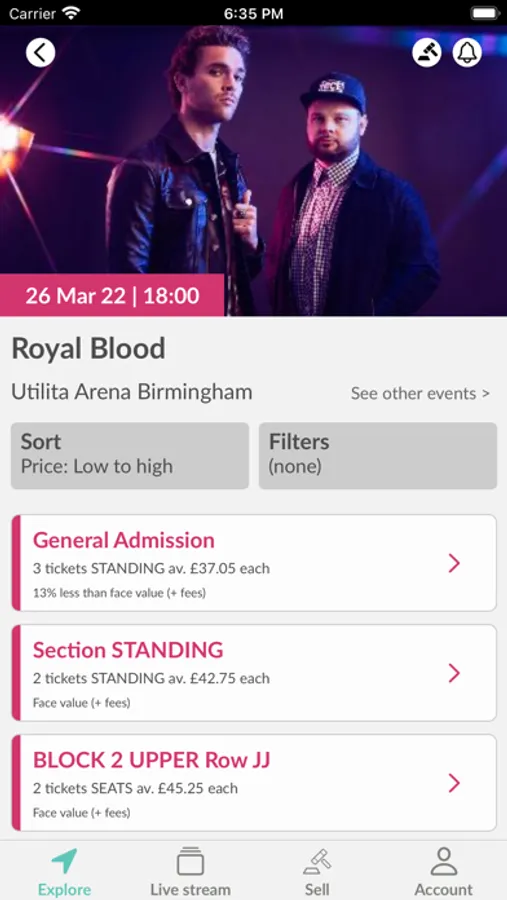 - Be notified by email or push notification as soon as someone lists the tickets you’re looking for.