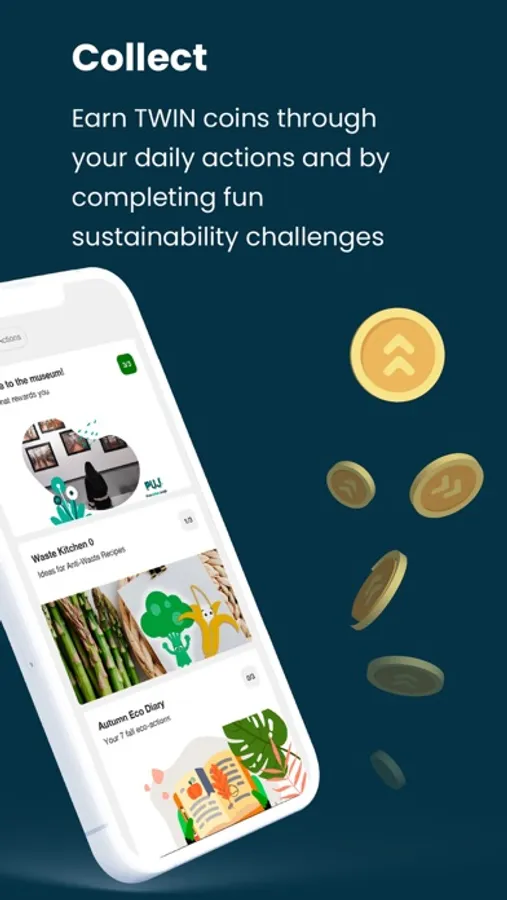 Collect TWIN coins with real-life daily sustainable actions and by completing fun challenges.
