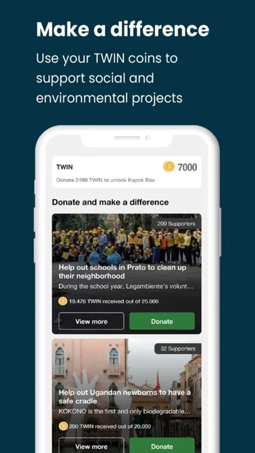 Make a difference! Use TWIN coins to support environmental and social initiatives in the Donate section.