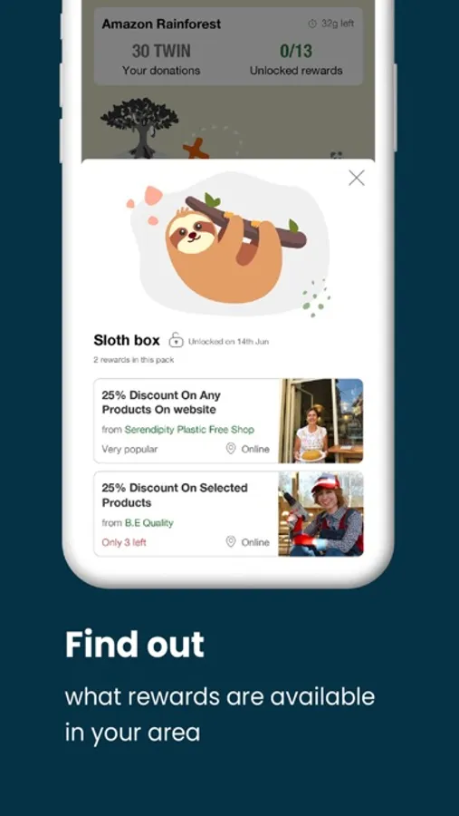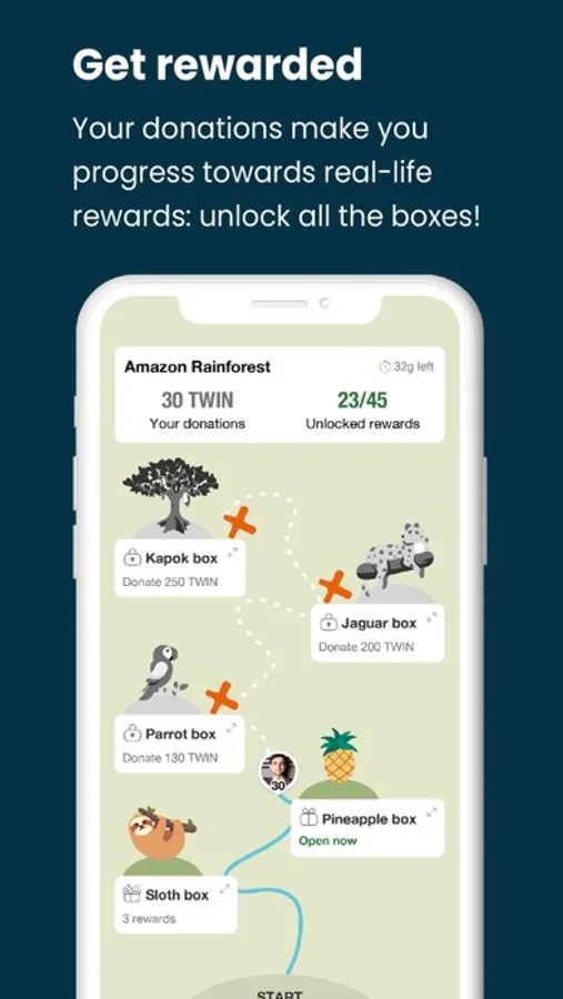 Increase your positive impact with greenApes: your sustainable actions make you earn TWIN coins, which you can use to support projects and initiatives that are helping out our planet. But there's more: the more you donate the greater rewards you will unlock!