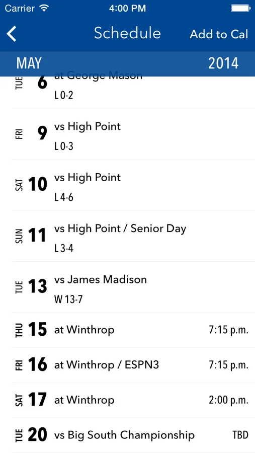 - schedules for sports
